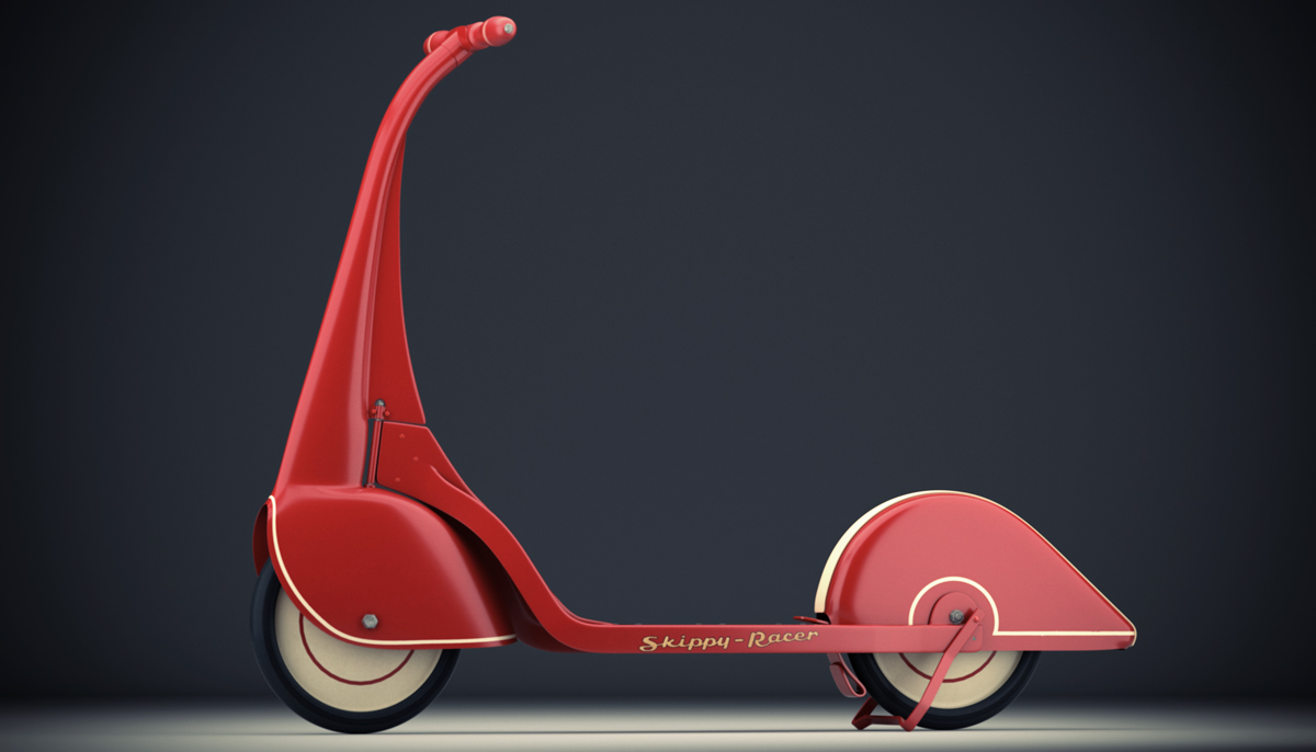 The Skippy-Racer scooter, circa 1933, by Harold Van Doren and John Gordon Rideout.